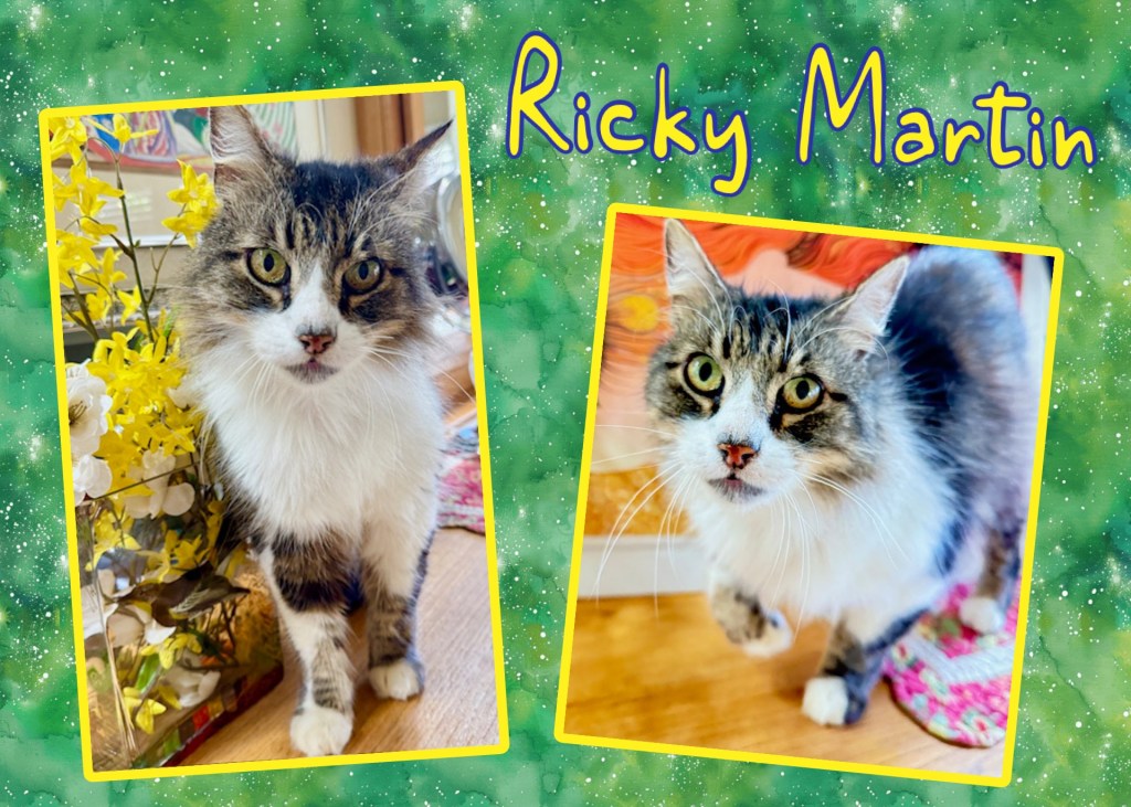 Ricky Martin is a very handsome 5-6 year old medium haired neutered male. He is up to date on vaccinations and is microchipped too.