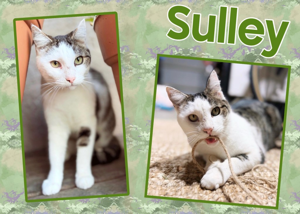 Sulley is a goofy, affectionate love bug who hasn’t had the easiest start in life. When his previous owner moved away, Sulley and his feline friends were sadly left behind to fend for themselves in the cold, with little food and no one to care for them.