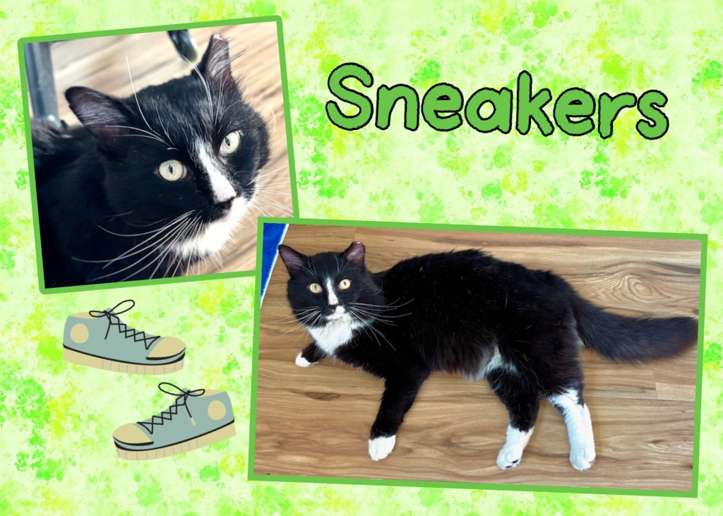 Sneakers is a ~3-year-old, long-haired love bug who simply cannot get enough cuddles, nuzzles and head bonks. This sweet boy is a constant companion, best friend, and will be someone’s perfect pal. He would be a fantastic emotional support animal (ESA). Sneakers is social, affectionate, and extremely loving. We haven’t seen him interact with other cats or dogs, so we don’t know how he’ll do with other fur babies, but he will be purr-fectly content to be the only fuzz bug of the household. We truly can’t say enough about the outgoingly-loving personality of this sweet guy. “More tummy rubs, please!”