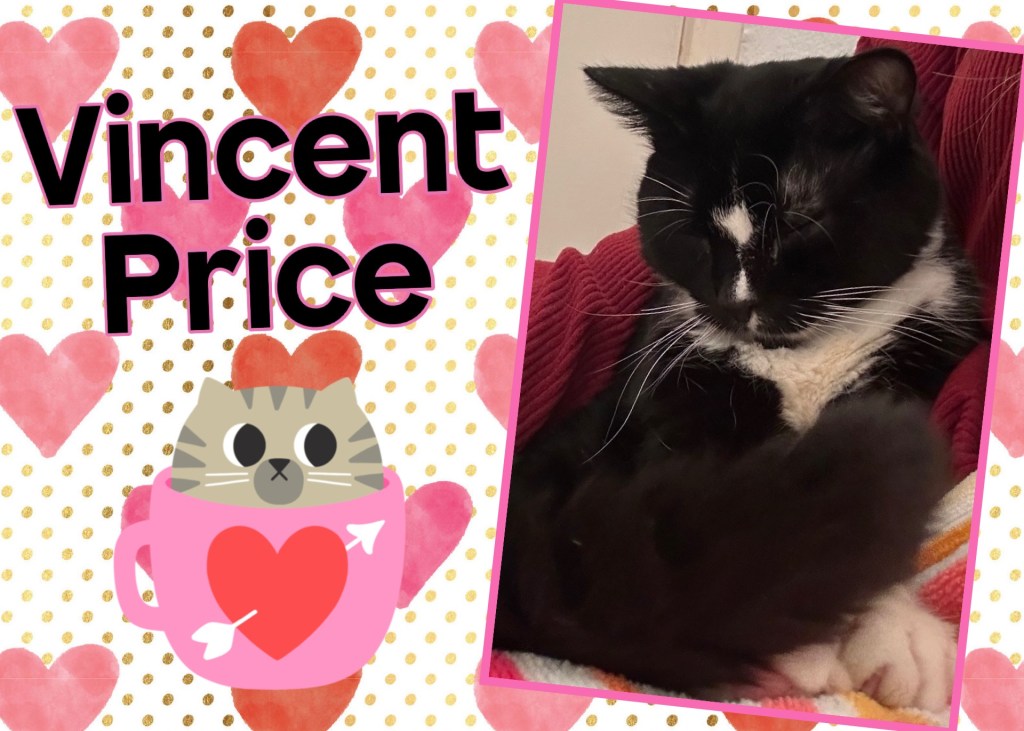 Vincent Price is a very special 3 year old friendly male cat that was found during one of our torrential rain storms with a badly broken jaw. Feline Network got him all fixed up and he is ready to be adopted to his fantastic forever home.